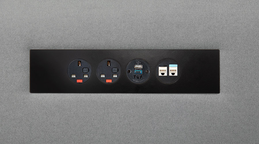 Discreet panel mounting: designed to be flush-mounted into desk tops, side panels or modular furniture cut-outs for a clean finish.
