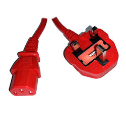 Red UK plug to IEC C13 mains kettle lead constructed on 10 amp rated H05VV-F 1.0mm2 cable and fitted with a 10 amp fuse.