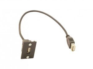 A compact, ready-to-install USB launch lead designed for furniture-mounted modules, floor boxes or under-desk installations — female to female and fixed at 300 mm for tidy, professional cable routing.