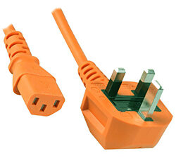 Orange UK plug to IEC C13 mains kettle lead constructed on 6 amp rated H05VV-F 0.75mm2 cable and fitted with a 5 amp fuse.