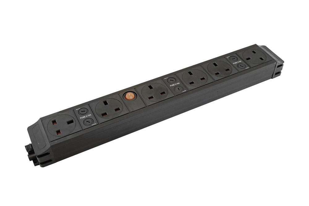 6-Way Under-Desk Modular Power Distribution Unit (PDU) – Individually Fused Sockets