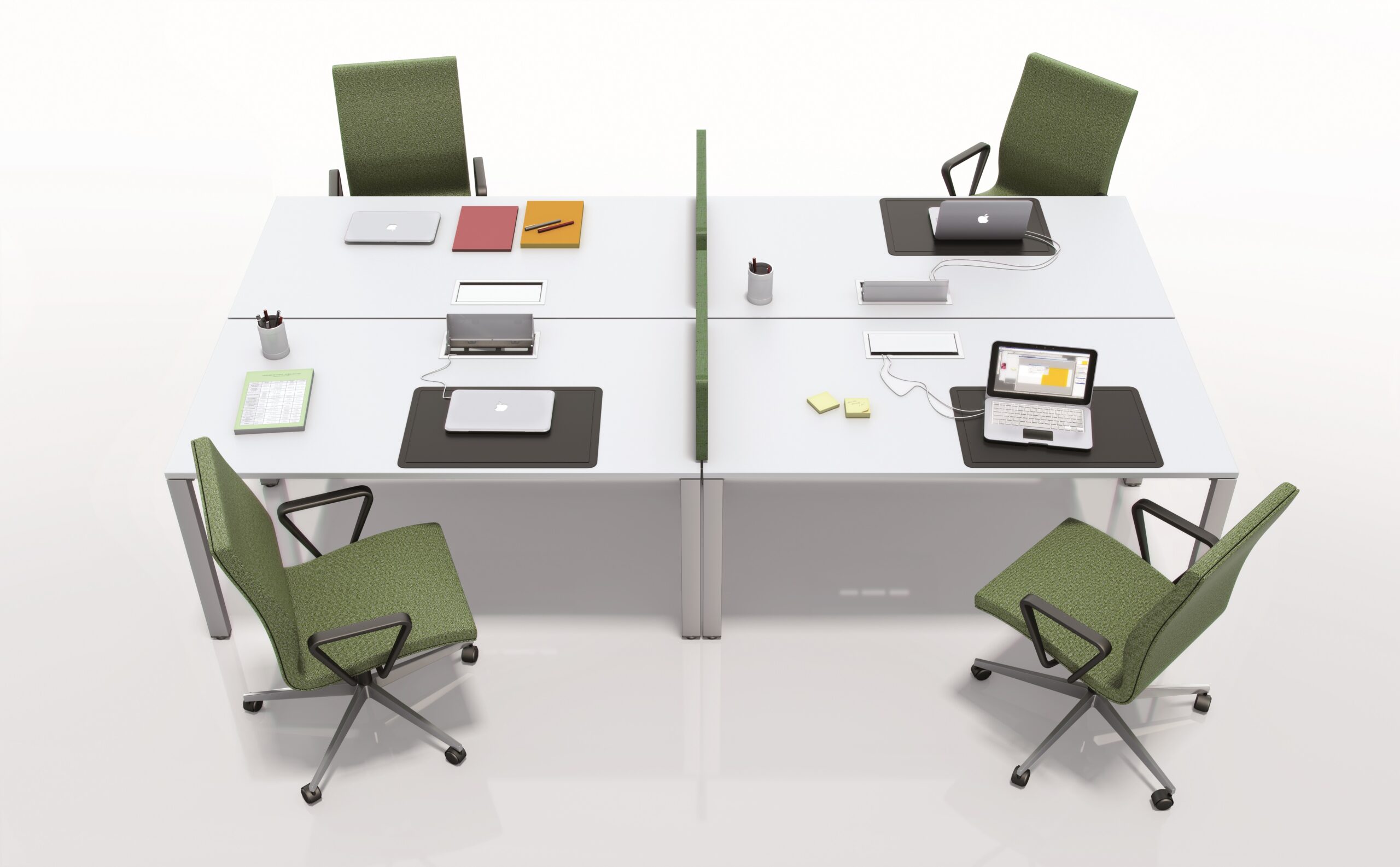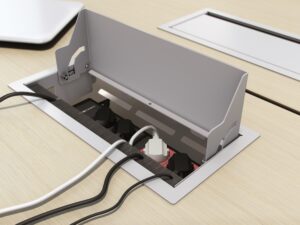 Prepared for installation in a table and access to electrifications in the cable tray, regardless of the system and manufacturer. Ideal for combining with Cubo electrifications.