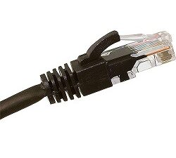 Black CAT5e Snagless Patch Leads constructed on UTP 24AWG (7/0.195mm) 4 Pair (Stranded Bare Copper) PVC cable. The ends are terminated with fully injection moulded 50µm gold plated (8P8C) RJ45 plugs
