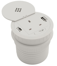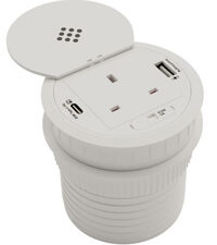 It’s ideal for hot-desks, meeting rooms, offices or home setups where users need access to mains, USB charging and wireless power without visible clutter or separate chargers.