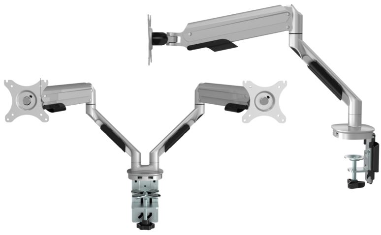 Monitor Arm: DRD-GAS1 (single) or DRD-GAS2 (double) – gas-lift mechanism for ergonomic height/tilt adjustment.