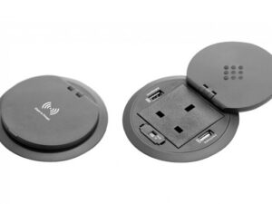 The DRD Power Package – Grommet & 4 Under Desk provides a complete, integrated workstation power solution. It combines a stylish desk grommet module with USB charging and power sockets, alongside a 4-gang under-desk power bar for neat, hidden cable management. Perfect for hot-desking, agile workspaces, or any modern office that demands both accessibility and a clean, professional look.