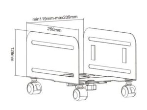 Easy access to your CPU: No more twisting, bending or crawling in a tight corner again to reach your CPU’s rear cables. Simply roll the stand forward for access. This stand adjusts from 119mm to 209mm (4.68 to 8.23 inches) and is built to hold up to 10KG (22lbs) to fit virtually any type of computer.