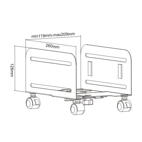 For easy access to your computer, DRD adjustable computer trolley stand elevates your CPU off the floor. This unit features front and back wheels that roll so you can easily move your CPU for access to rear cables and ports. Its front wheels lock to keep your computer securely in place.