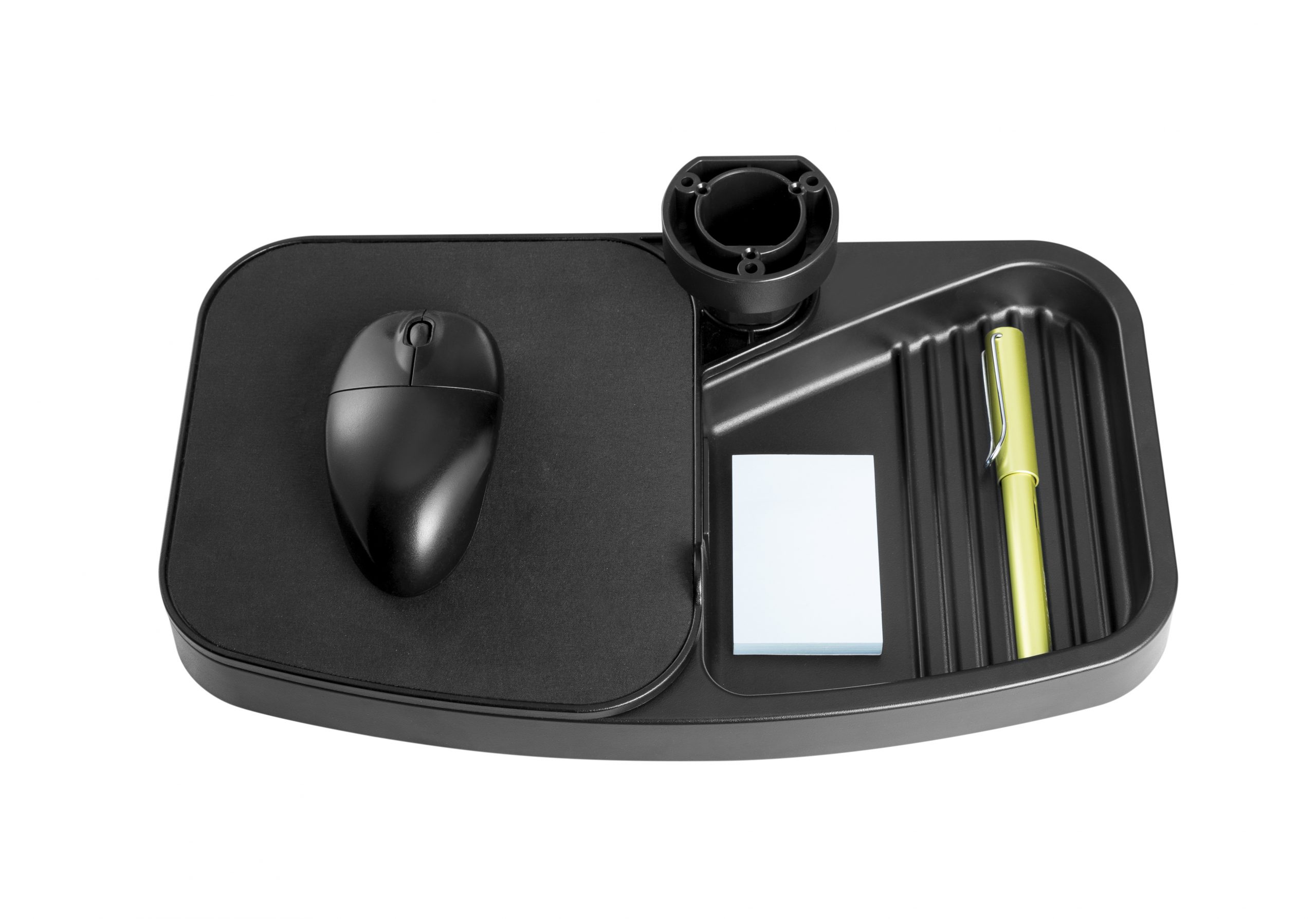 The mouse pad is made from EVA and fabric for precision movement, compatible with all high-definition mouse. The mouse pad and the stationery storage compartments can swivel freely 360º, while not in use the whole item can be rotated under the desk top completely to keep the desk clean and tidy.
