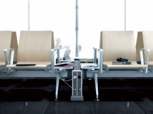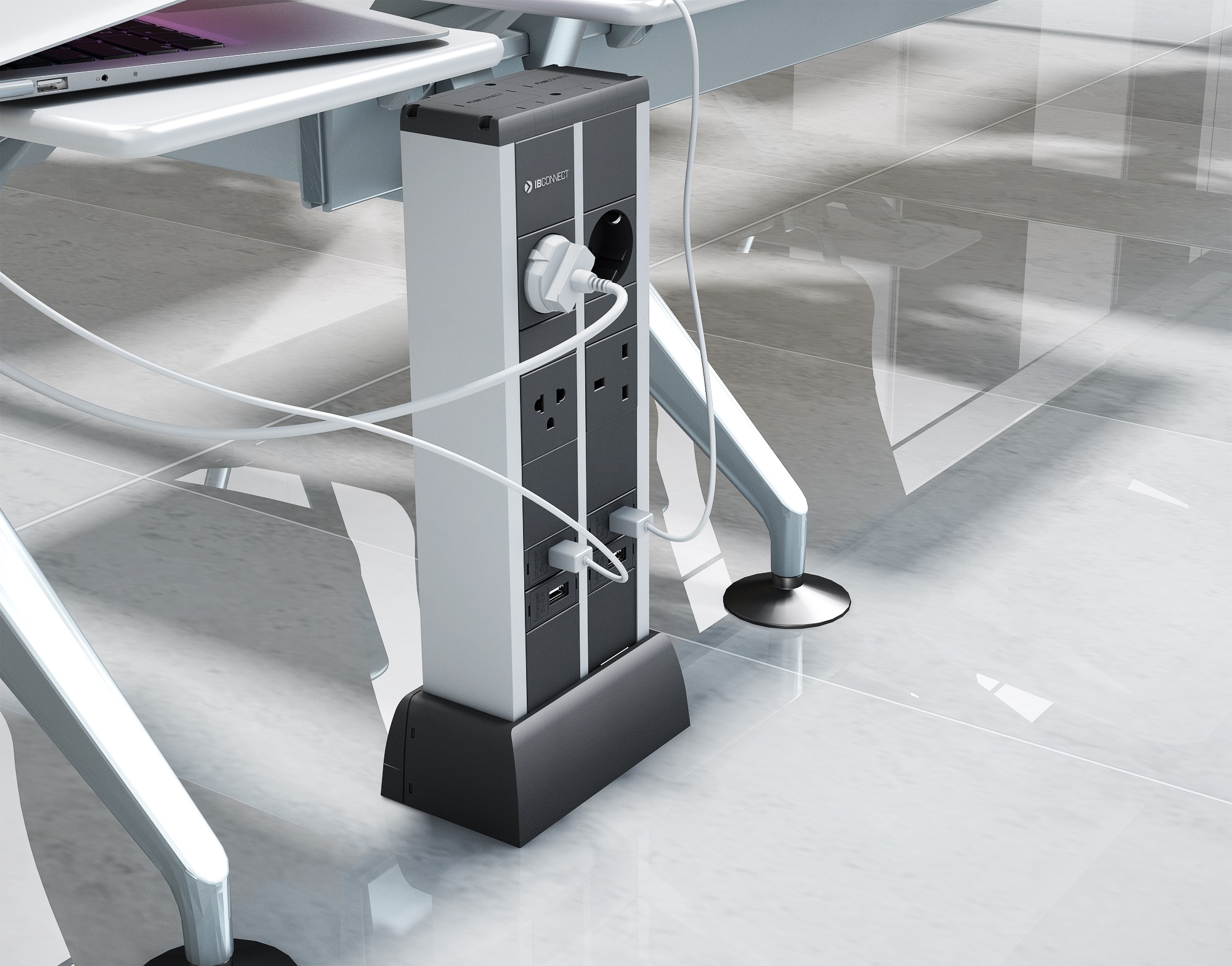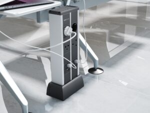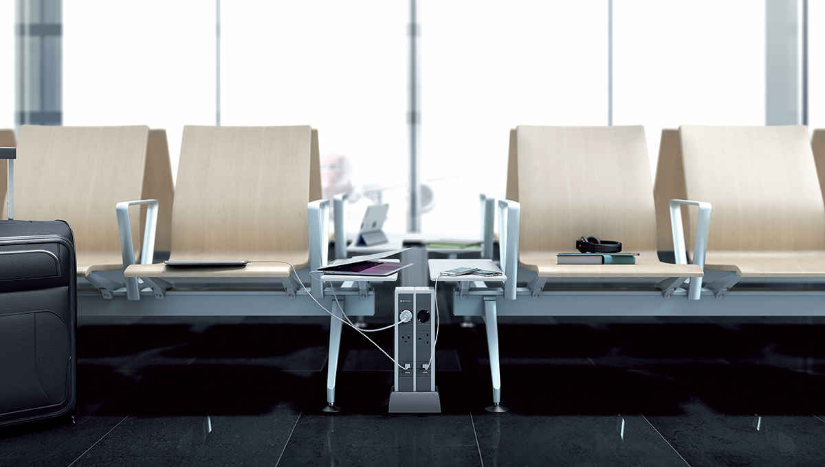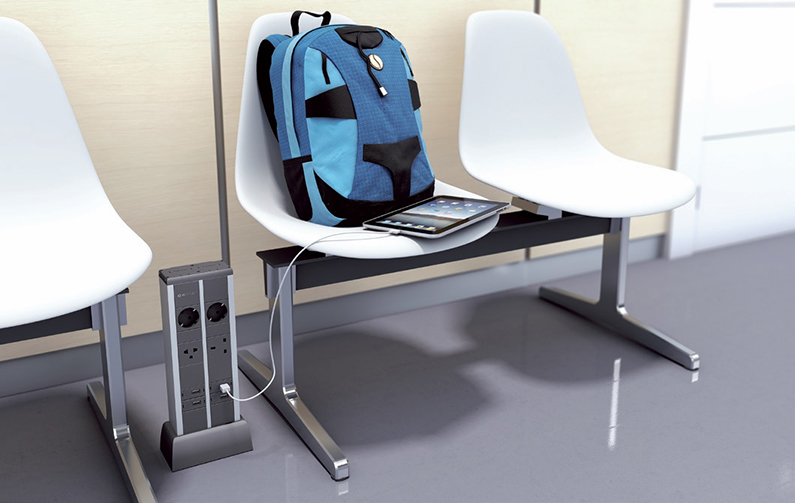 Ideal for waiting rooms where the origin of the power supply is the raised floor or the surface and where you want to offer users the possibility of recharging their laptops or gadgets. It can be adapted to any already-existing installation.