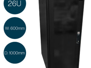 (H)26U (W)600mm (D)1000mm External Height 1342mm Lande DYNAmic Data Cabinet Glass Front Door Steel Rear Door 2 x Removable Side Panels