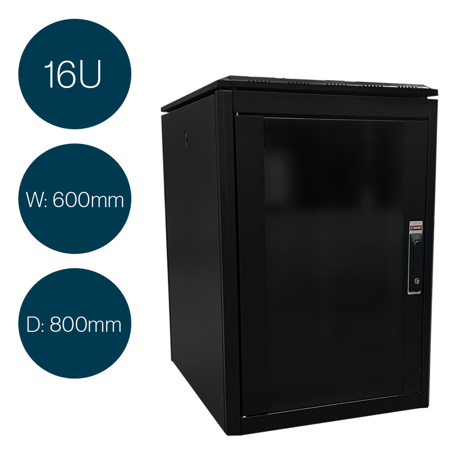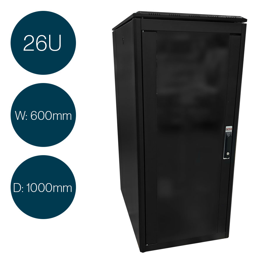 (H)42U (W)600mm (D)600mm External Height 2053mm Lande DYNAmic Data Cabinet Glass Front Door Steel Rear Door 2 x Removable Side Panels