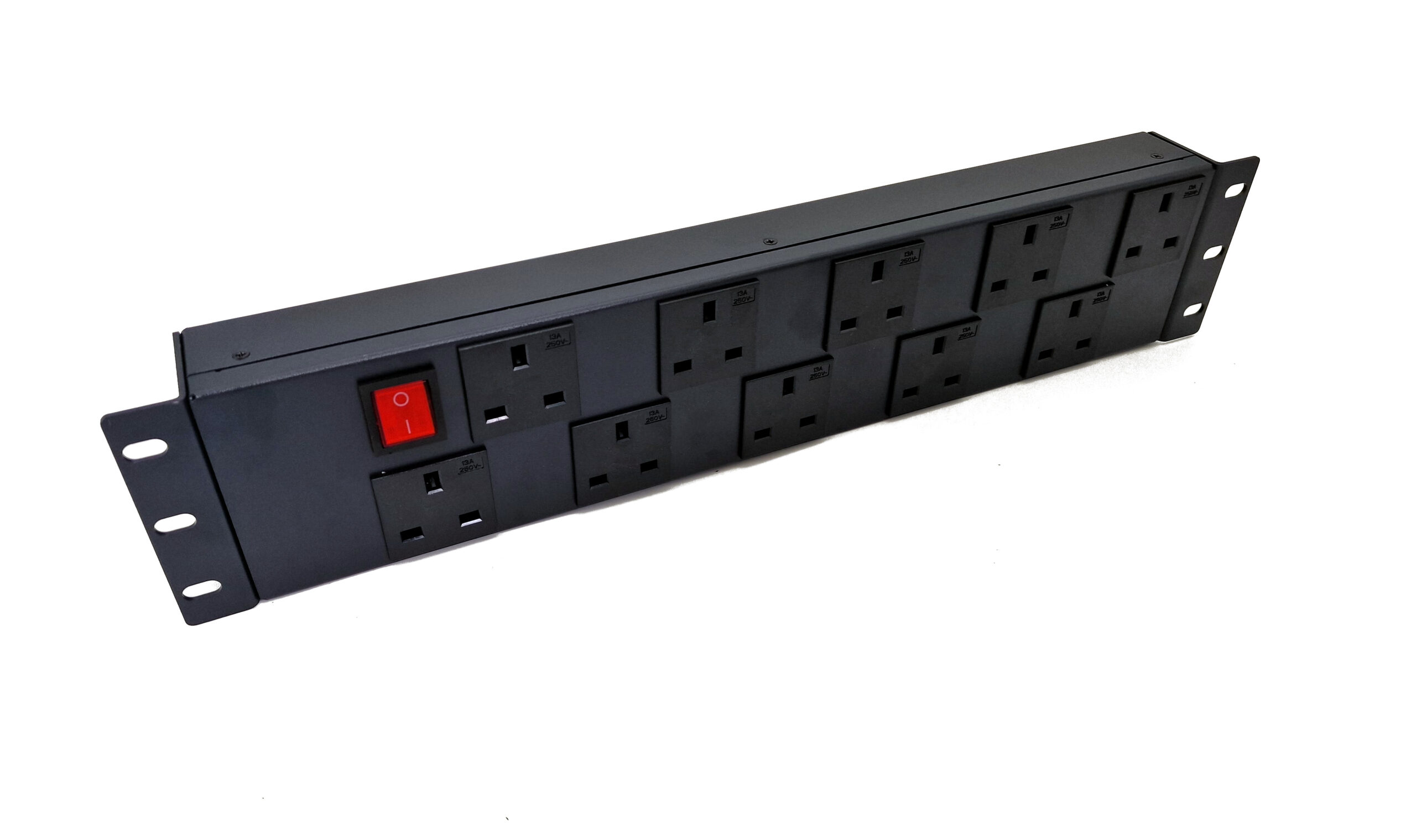 2U rack-mountable horizontal PDU with 10 UK socket outlets – ideal for high-density server/cabinet installations.