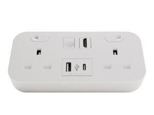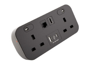 P-Pack Desktop Sockets 3 UK Power Sockets, 2 USB (1 x Type A, 1 x Type C) 2 Network Sockets with Master Switch