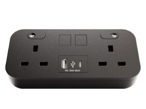The ICON range provides a smart, all-in-one desktop power solution. Designed for modern workstations, hot-desking zones and collaborative spaces, these units combine multiple UK mains outlets, built-in USB charging and optional data/AV keystone cut-outs — all in a compact and stylish desk-mounted module.