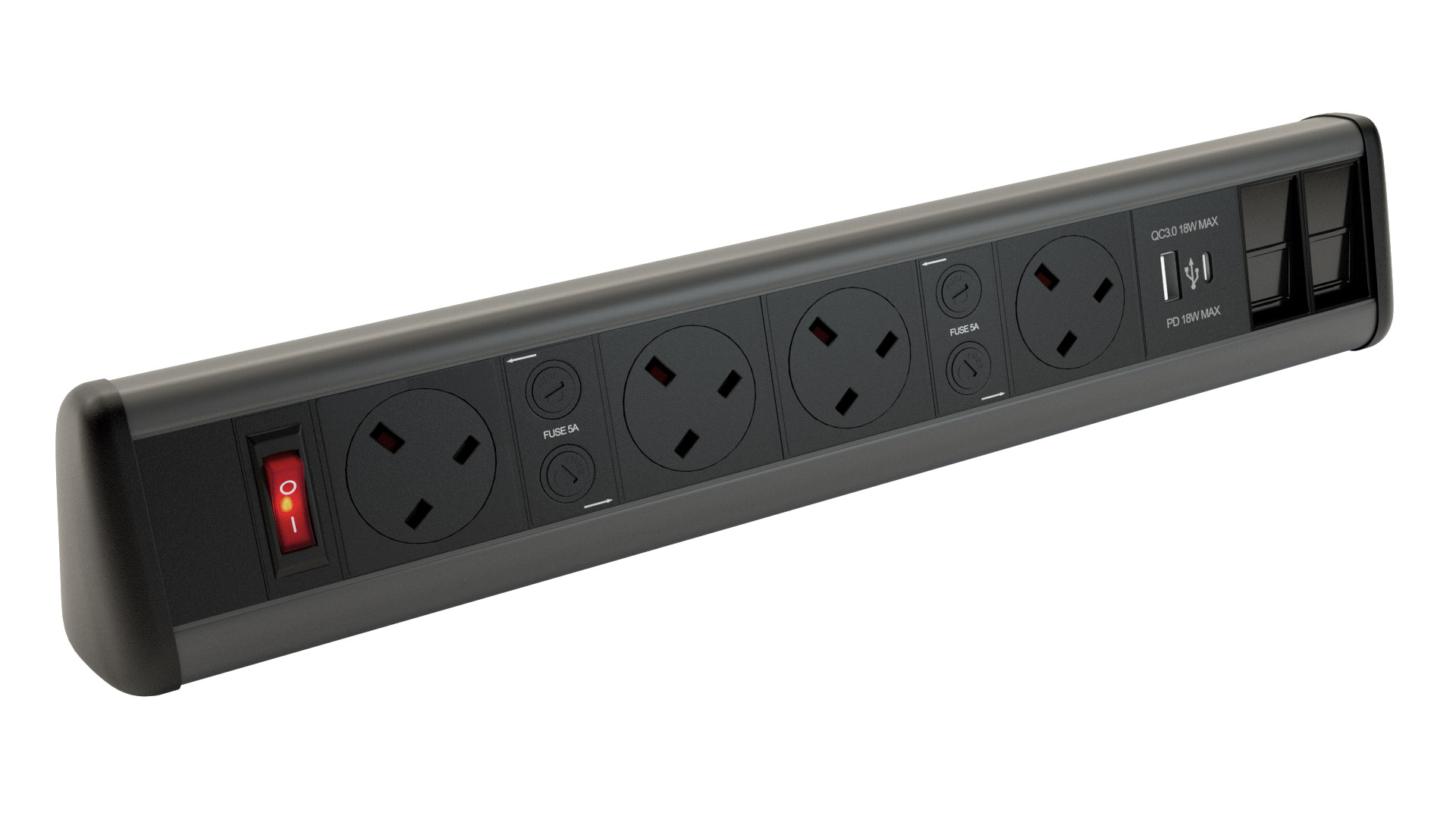 Resettable thermal fuses per socket (in place of traditional ceramic fuses) to meet the commercial furniture-mount standard BS6396:2022—reducing maintenance calls and improving long-term reliability.