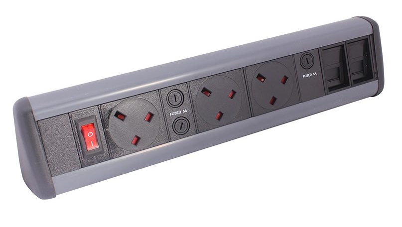 Maxi Desktop Unit Sockets 3 UK Power Socket, 2 Network Sockets