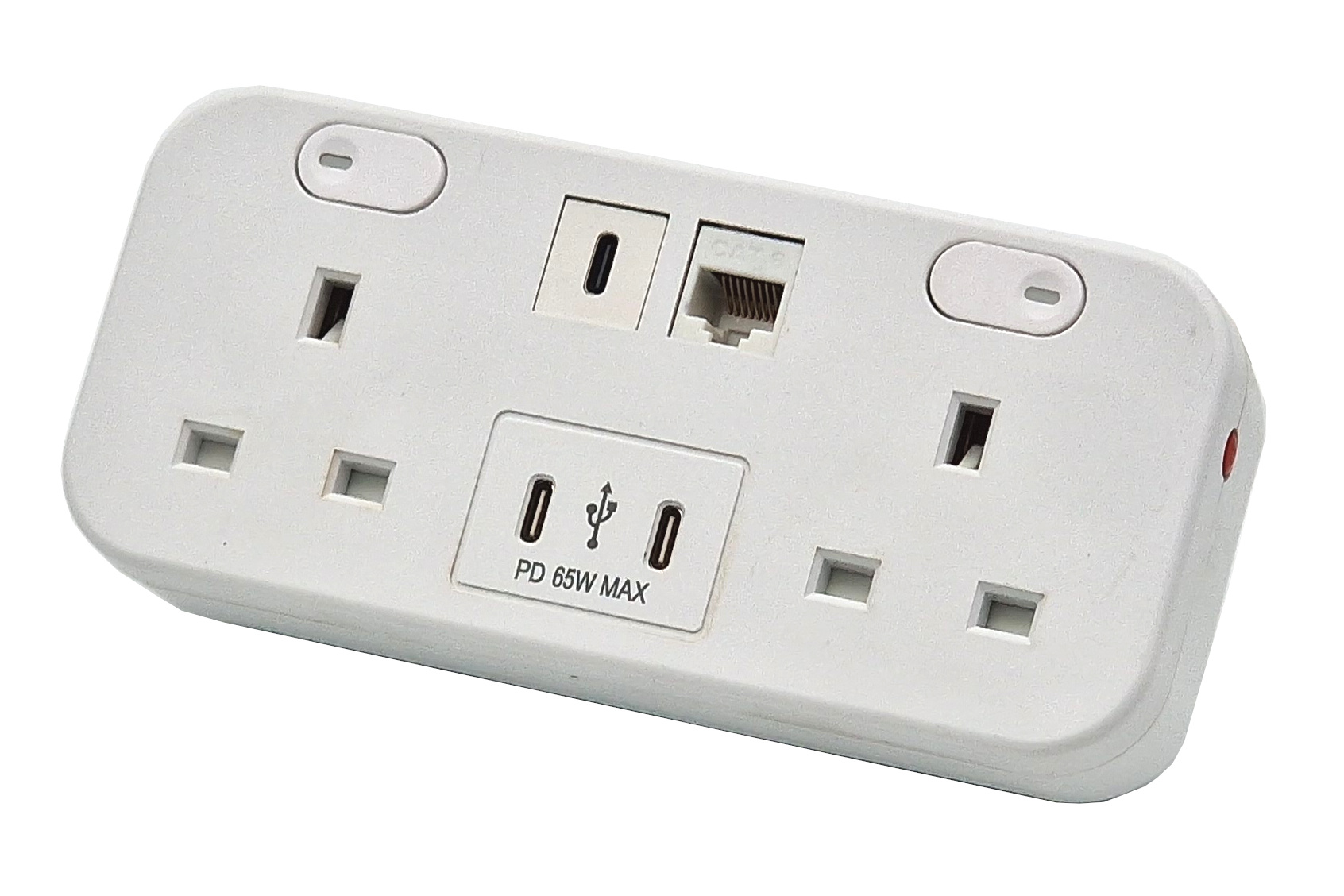 P-Pack Desktop Sockets 2 Power Sockets, 2 USB (Type A & Type C) , 2 Network Sockets with Master Switch