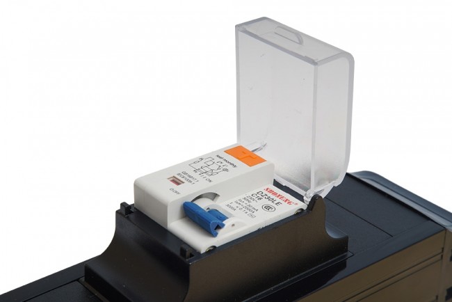 Modular furniture installations and cable tray systems needing a clean inline RCBO solution.