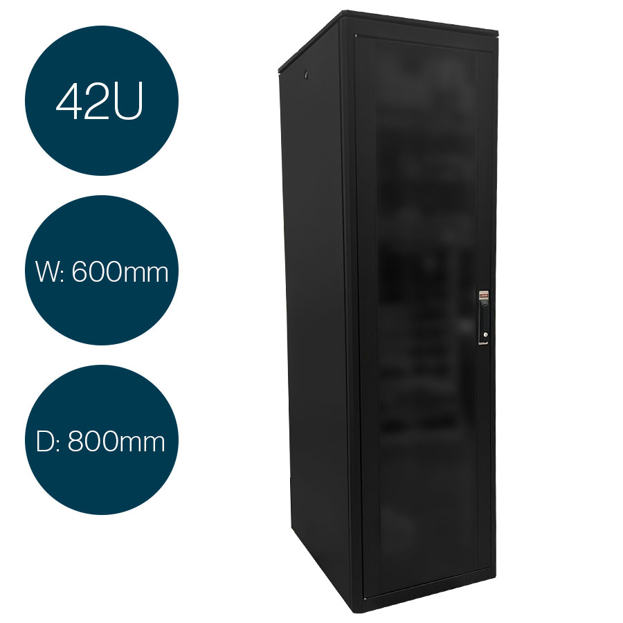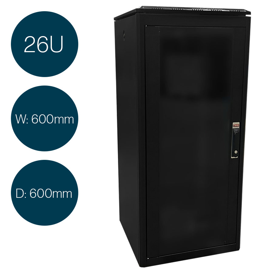 (H)12U (W)600mm (D)800mm External Height 720mm Lande DYNAmic Data Cabinet Glass Front Door Steel Rear Door 2 x Removable Side Panels