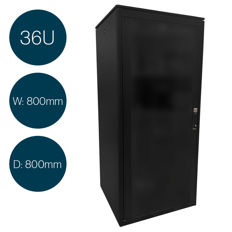 - All 800mm wide variants fitted with front vertical cable manager with hinged covers