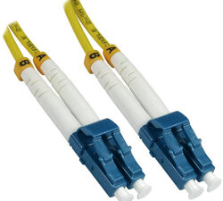 LC-LC OS2 fibre patch leads constructed on Yellow 3.0mm diameter low smoke zero halogen (LSZH) singlemode duplex cable. OS2 is specified with a 9µm core and 125µm cladding supporting 100 Gbps link distances up to 10km.