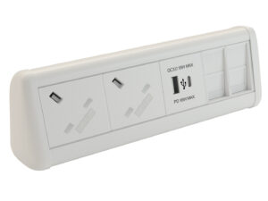 Designed for modern workstations, hot-desks or collaborative spaces, this module provides a combination of fused mains power, built-in USB charging and integrated network connectivity — all in a sleek, desktop-mounted enclosure.