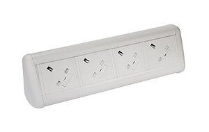A high-performance desktop power module designed for busy modern workstations and collaborative spaces. With four individually fused UK sockets and a compact footprint, the MAXI Desktop Unit delivers safe, robust power in a sleek white housing.