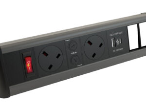 For workstations that require both reliable mains power and flexible data/AV connectivity right at the desk edge — such as laptops, monitors, chargers, network access and other peripherals — this P-Pack unit offers a streamlined, integrated solution. The individually-fused sockets help reduce downtime and improve safety; the USB charger supports mobile devices; and the 6C cut-outs give you freedom to customise the connectivity as needed. With the angled socket orientation and sleek design, it keeps the desk tidy while delivering full functionality.