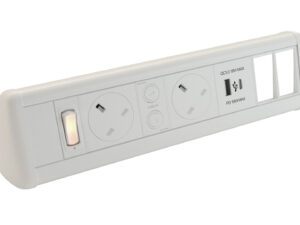 Engineered for modern desks and collaborative workspaces, this module combines safe mains power, USB-charging support and configurable data/AV cut-outs — all in a sleek, desk-mounted format.