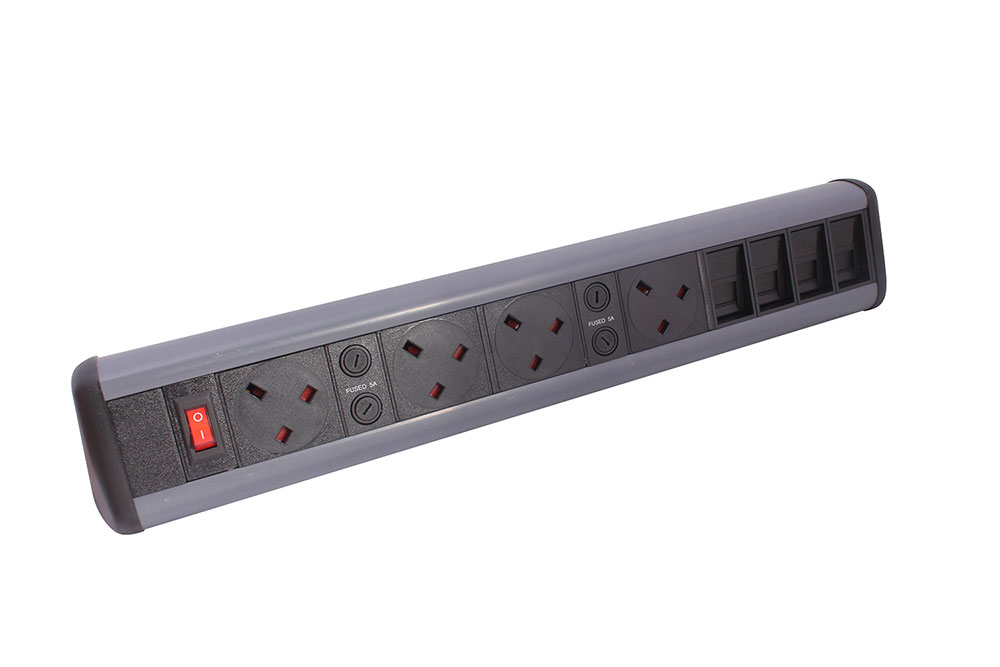 P-Pack Desktop Unit – 4 UK Power Sockets & 4 Network (Cat6) Sockets with Master Switch