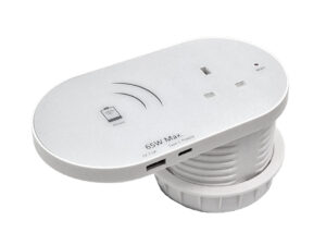 Choose between the subtle matte Black or clean White finish to suit your space. It’s perfect for power-hungry laptops, smartphones, tablets and wireless-charging devices, and keeps everything neatly integrated into your desk surface.
