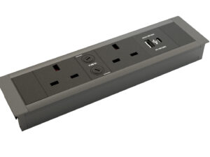 Built for the modern office environment, this surface-unit power module brings essential connectivity to the desktop – combining 2 UK mains sockets with a high-quality dual USB charger (Type A + Type C) in a compact, flush-mounted style. The unit is designed to fit a 63 mm × 246 mm desk cut-out and clamps securely into clean desk surfaces.