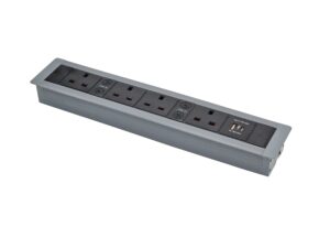 PD Surface unit with 4x UK sockets, dual USB charger Desk cutout 63 x 376mm