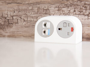 PHASE is available in either white or black with your choice of grey or black socket fascias. The two socket apertures can be configured with a combination of power and data sockets from the extensive OE 42mm modular range.