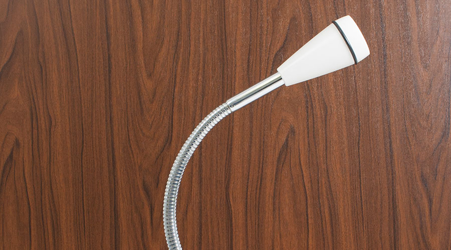 Flexible gooseneck design (chrome or black steel) for adjustable positioning.
