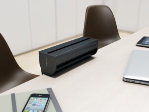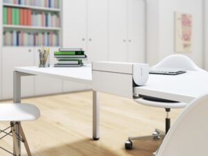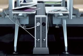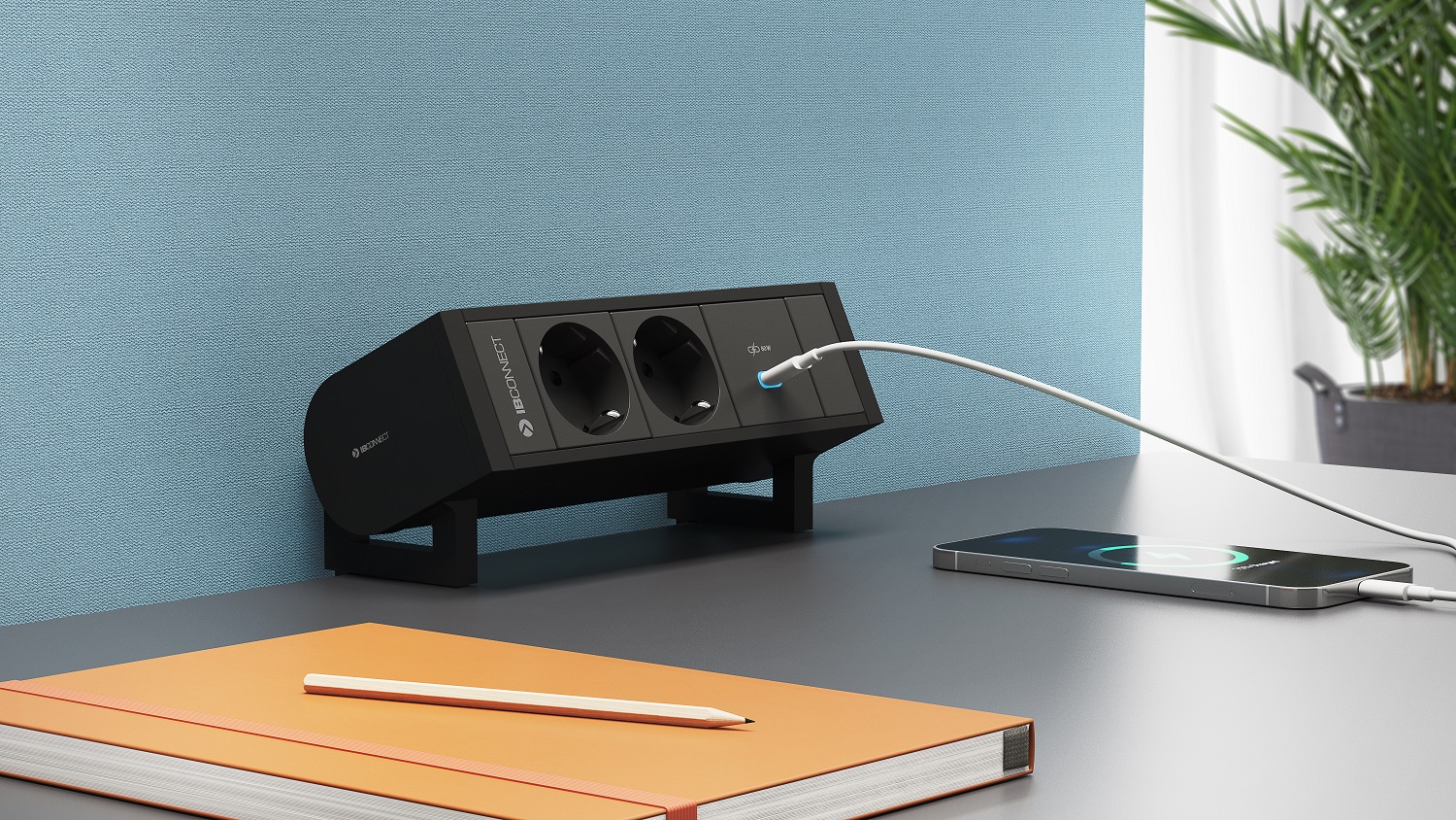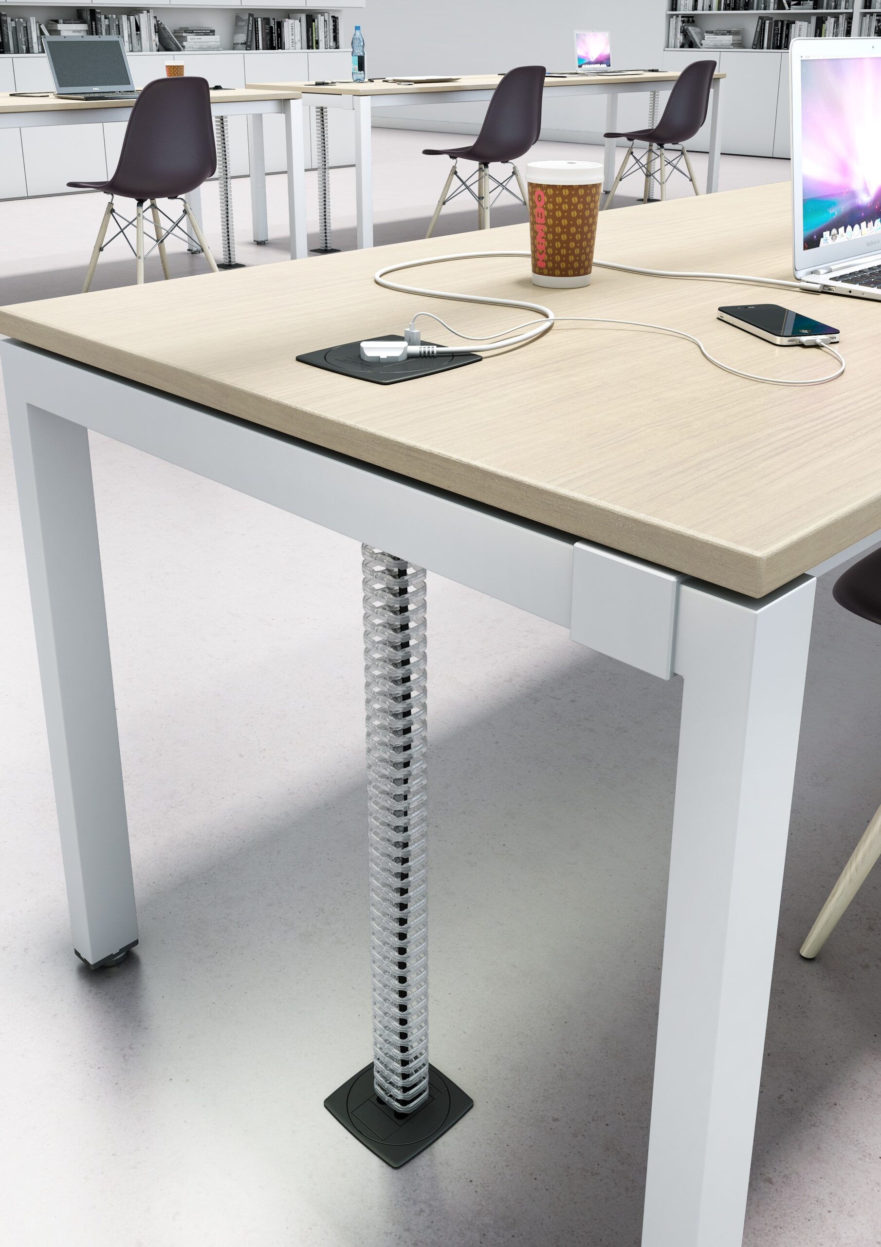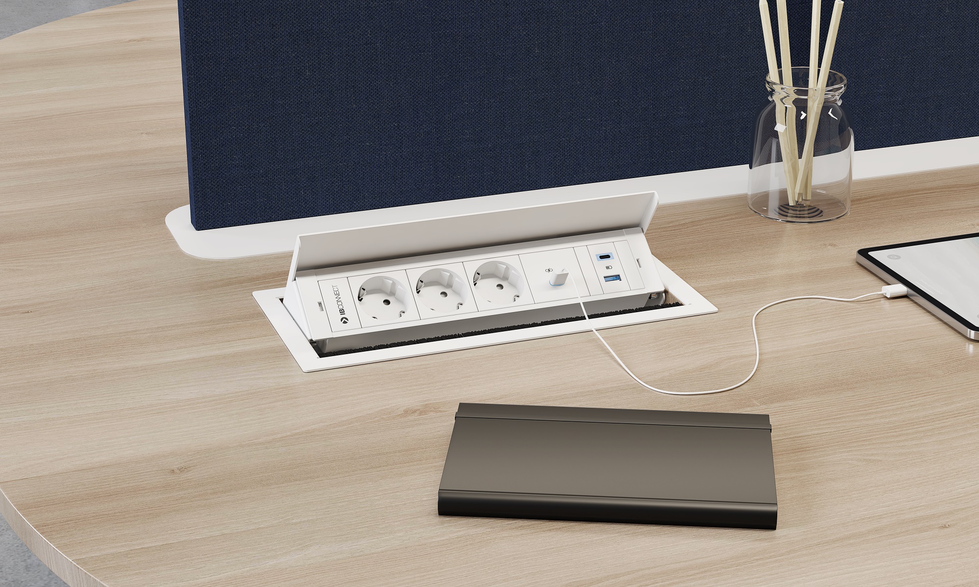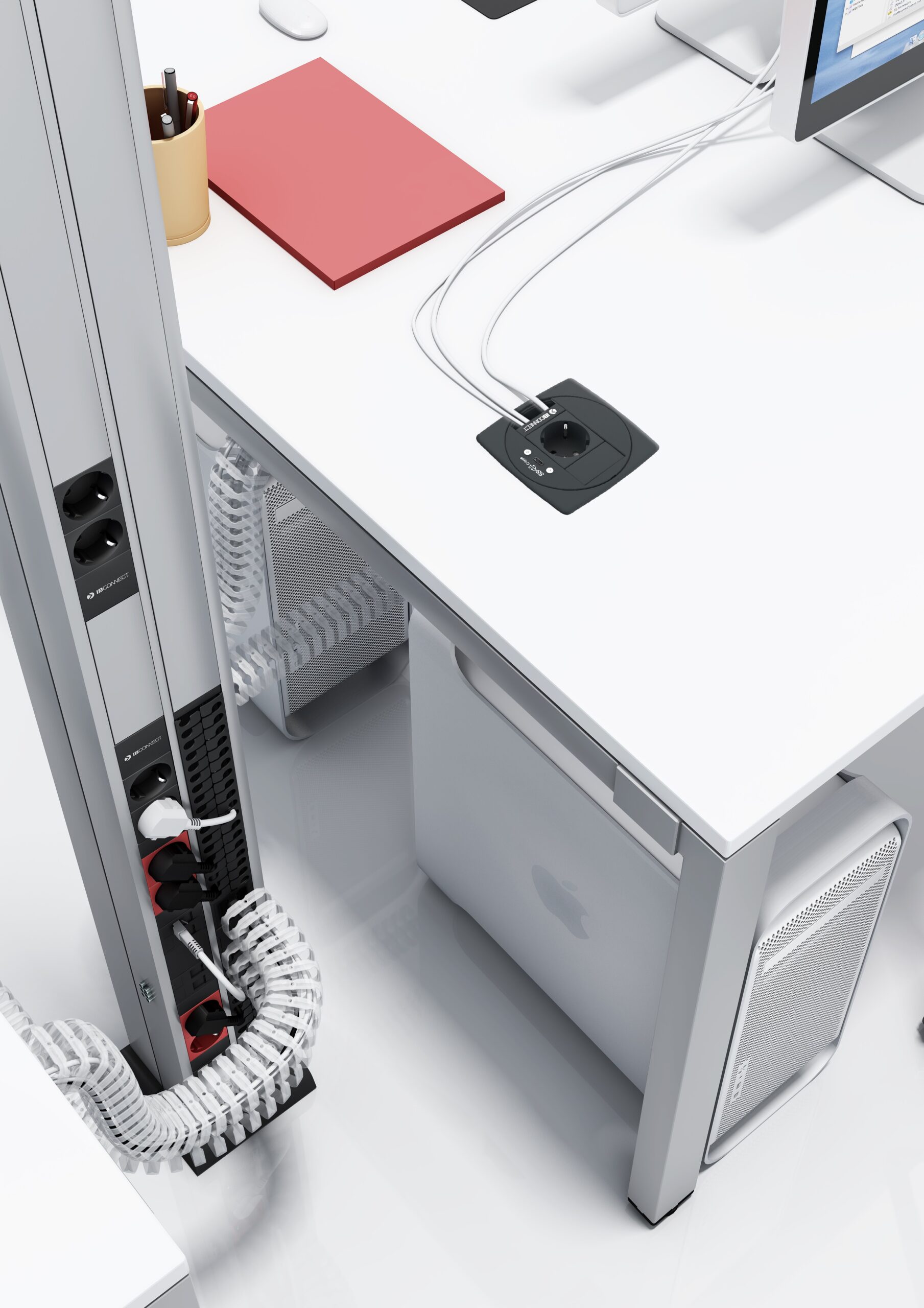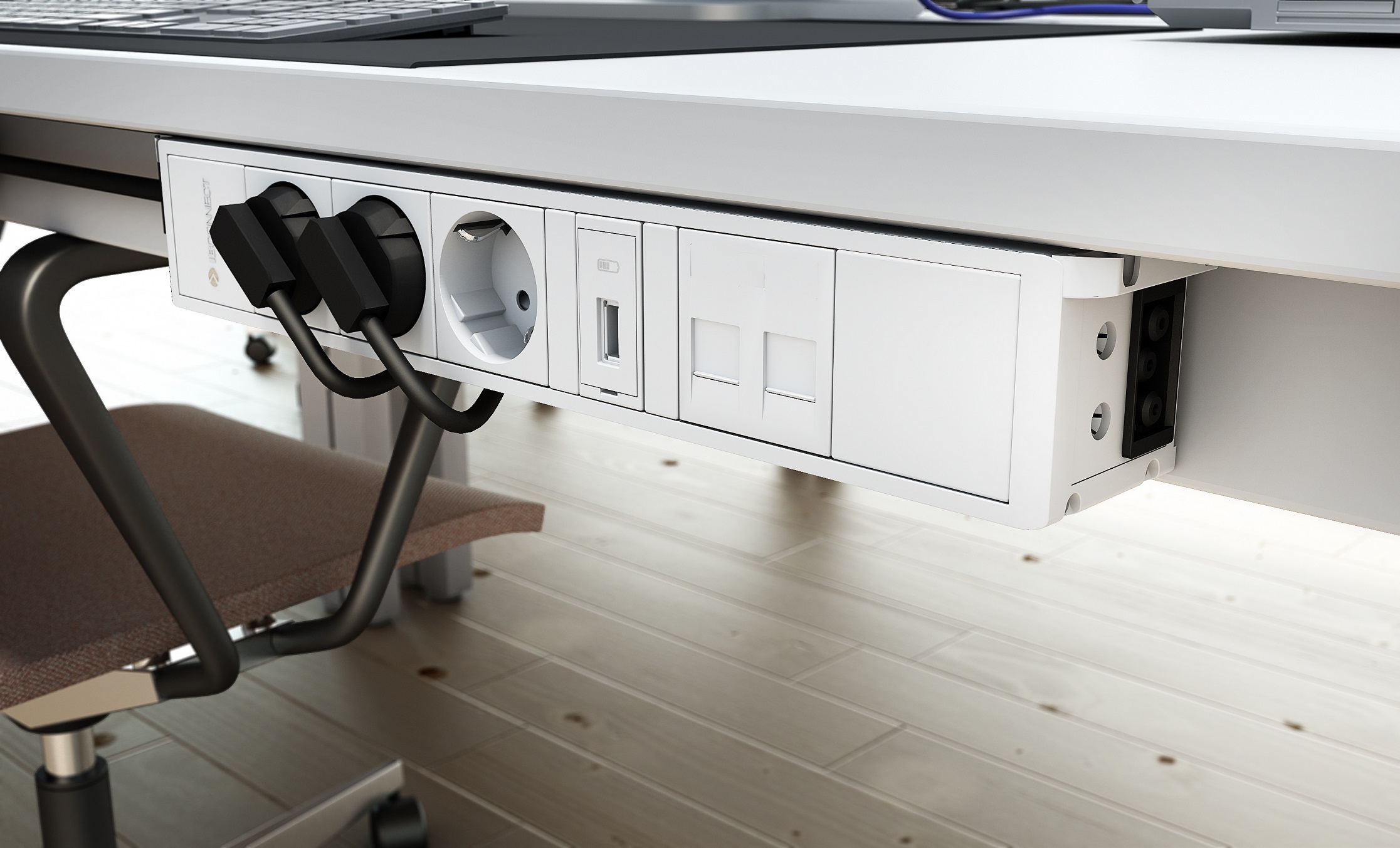 Its installation system is fixed to the surface. This makes it possible to secure it quickly and simply without machining the table. Any additional cable tray or securing accesories are needed.