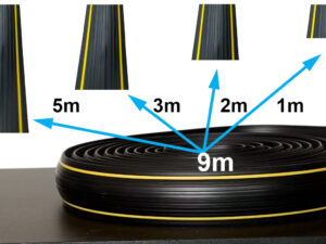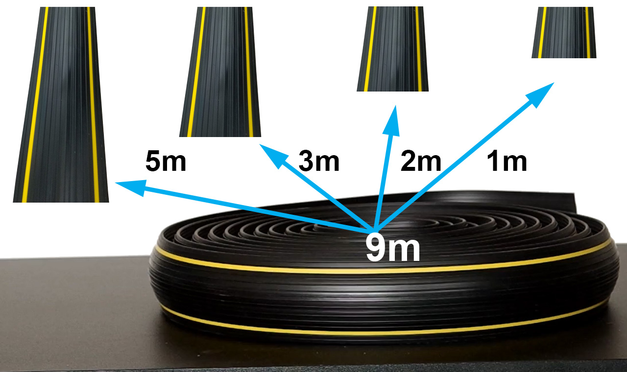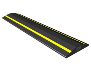 Sometimes you want temporary power/data access at places not designed to provide those, so you run extension cables on the floor. Cables on an open floor are a serious health and safety hazard, and this is where you need DRD FCP Rubber Cable Protector. It keeps the cables tidy inside, protects their insulation, reduces accidental trips & falls, and prevents electrocution. The DRD FCP-series cable cover is made from durable heavy-duty rubber, able to support up to 2,000 Kg (4,410 lb), ideal for exhibitions, shows, and galleries with heavy foot traffic. Its low profile (13mm / 0.5″) and yellow high-visible bands also makes it suitable for homes, offices, gyms, and halls with light to medium foot traffic.
