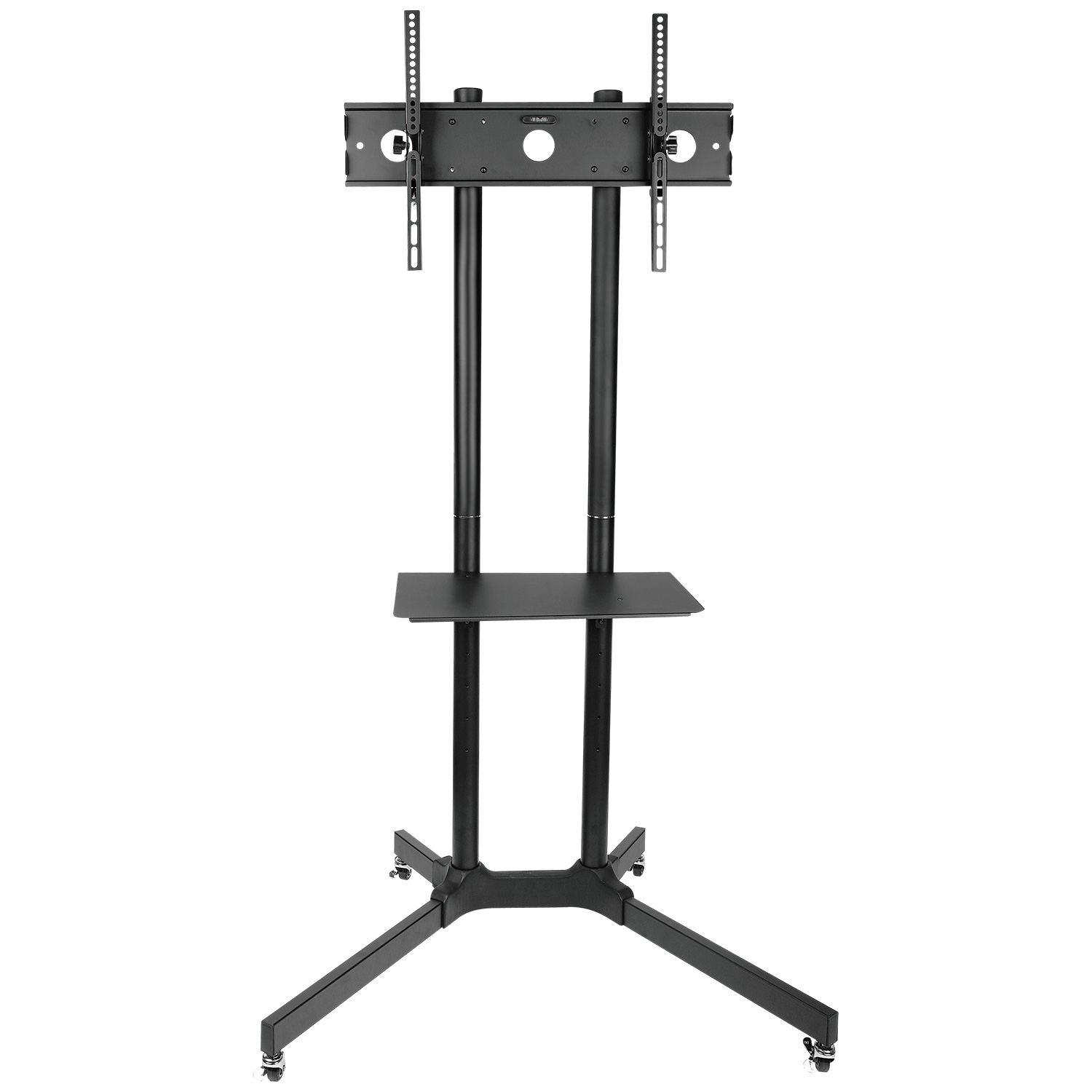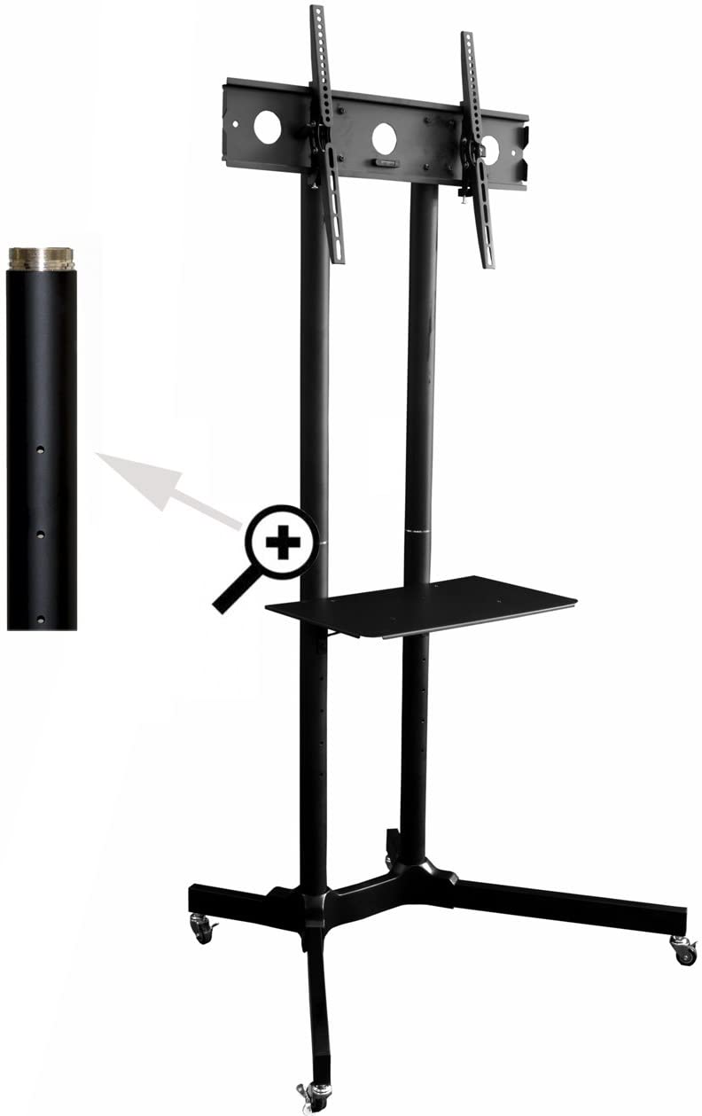 DRDTT411B television trolley is ideal for business or individuals looking to showcase their adverts, display information or videos, but with the flexibility to move the display around. This black TV stand features a stylish gloss finish and is constructed of a sturdy cold steel, being designed for maximum stability and durability. The TV height can be conveniently adjusted up to a maximum height of 1.5 m, and can be angled by up to 15° vertically.