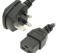 UK plug to IEC C19 mains lead constructed on 16 amp rated H05VV-F 1.5mm2 cable and fitted with a 13 amp fuse.