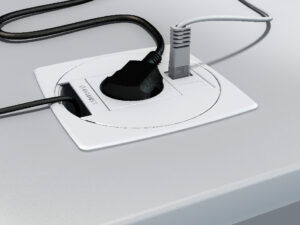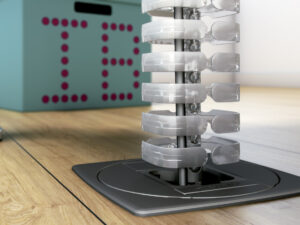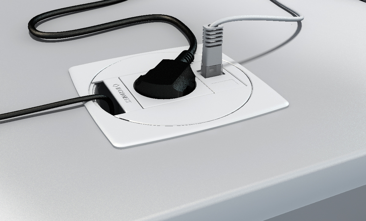 The basic solution for the electrical and multimedia connectivity of a work station. It fixes the Orgatech vertebra directly and includes cable guide space for auxiliary cable access.