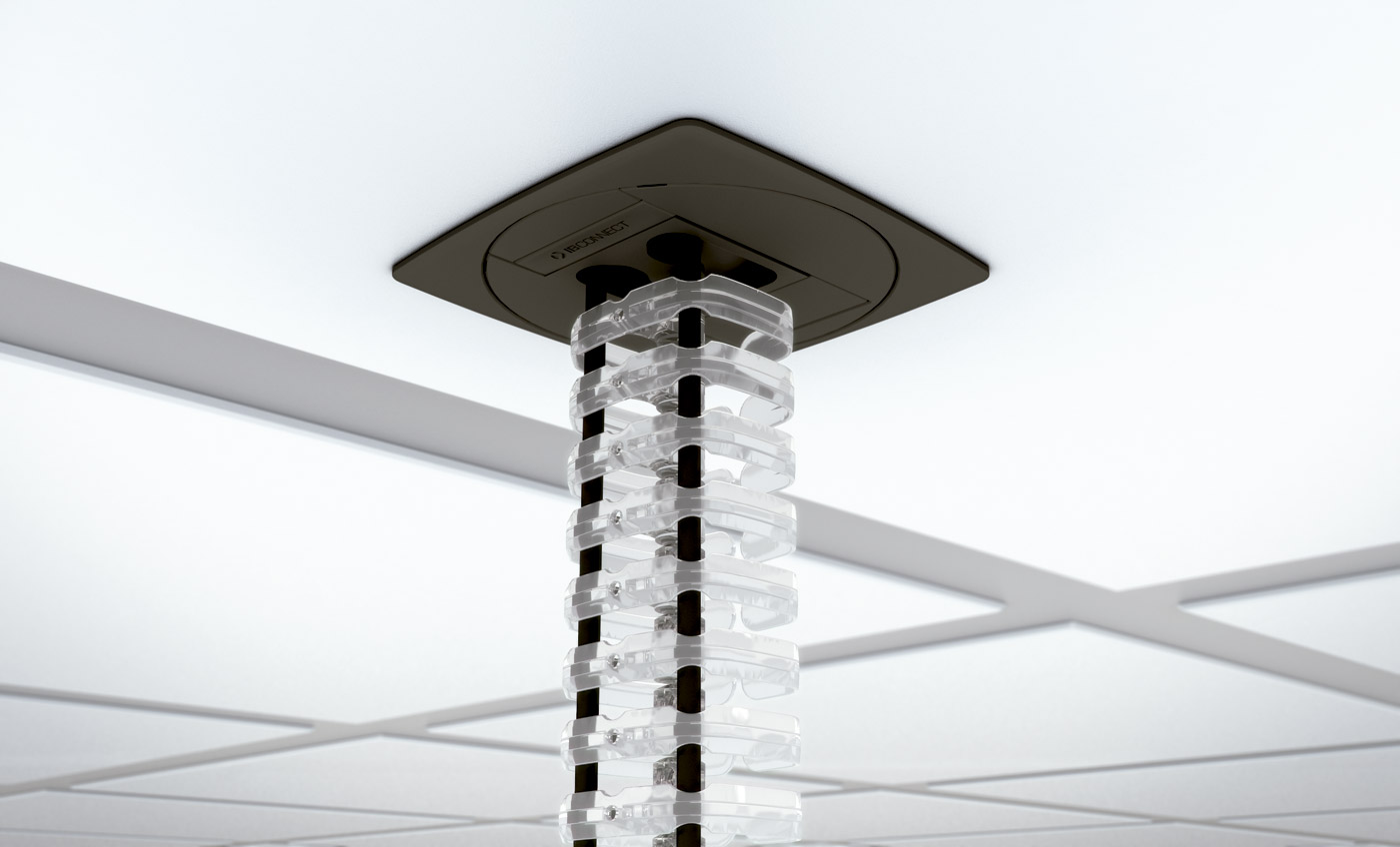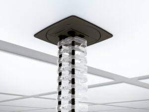 Not electrified, the Orgatech vertebra can be fixed directly on the ground or the technical ceiling; this is the beginning of the cable organization in an installation.