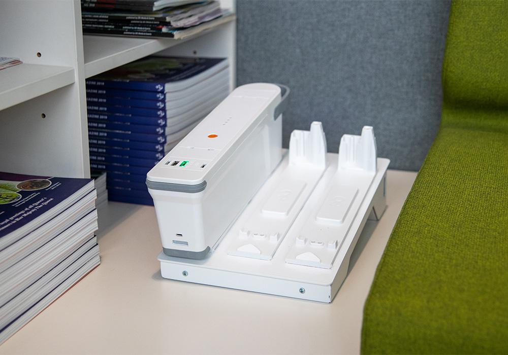 ANIMATE is a paradigm-shifting power solution designed to liberate workstations from fixed wall sockets and trailing cables. With click-and-connect modules and patented battery-technology, ANIMATE enables true flexibility: drop in a portable pack wherever power is required; dock it, charge it and move it as your workspace evolves. Its modular architecture suits hot-desking, agile offices and mobile work-stations.